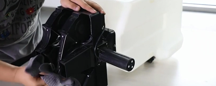 (1) Mettez l'épandeur en marche, rincez le baril à l'eau et utilisez une brosse pour frotter l'intérieur du baril.