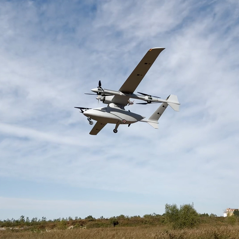 Il s'agit d'un drone à voilure fixe à décollage et atterrissage verticaux. Grâce à sa puissante configuration de puissance, il offre une autonomie de vol exceptionnelle, garantissant une longue durée de vie. Sa structure épissée unique facilite le remplacement et la maintenance. Il est applicable dans des domaines tels que les communications d'urgence et le sauvetage, la vidéosurveillance, la topographie et la cartographie aériennes, la prévention des incendies de forêt, l'exploration géologique, l'inspection de pipelines et le transport de marchandises.